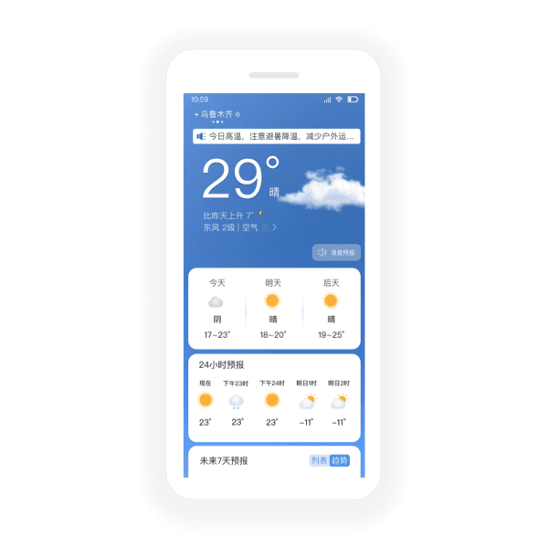 一款简洁的天气应用,提供实时天气、15天预报和灾害预警